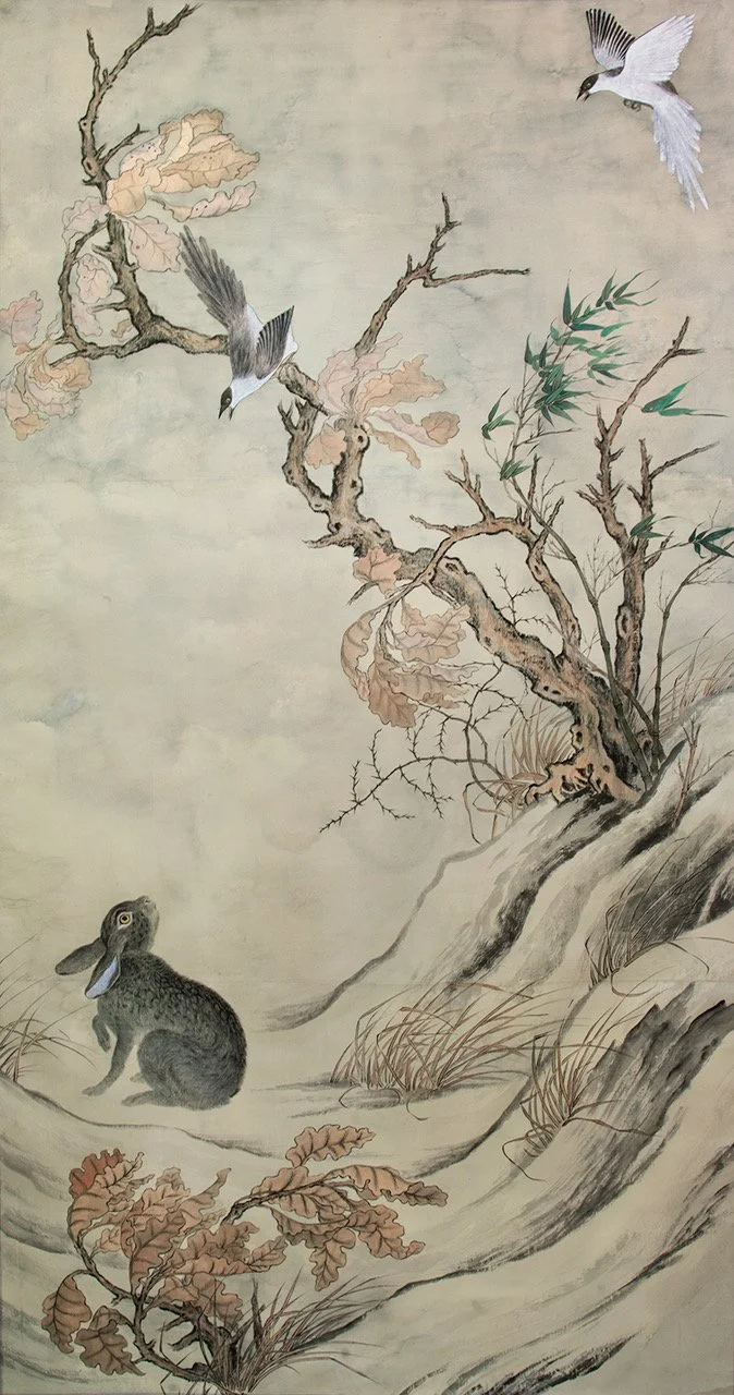 Wu Lan-Chiann’s painting “Hare with Two Magpies-After Cui Bai” entered the collection of the Royal Ontario Museum in January, 2023.